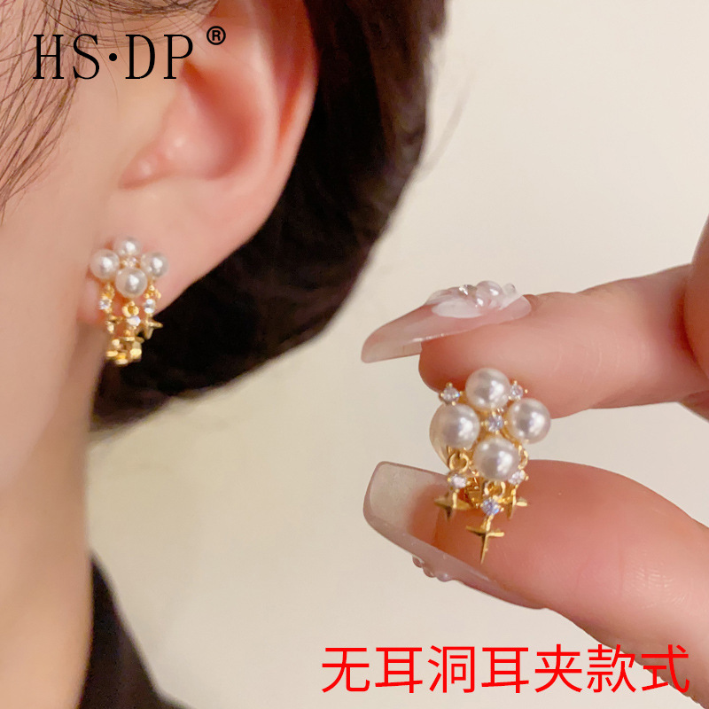 小衆のファッションは優しくて、真珠の芒星の流蘇の耳の挟みの女性の精緻で軽くて豪華で簡単で、耳の穴の耳飾りの卸売りがありません。