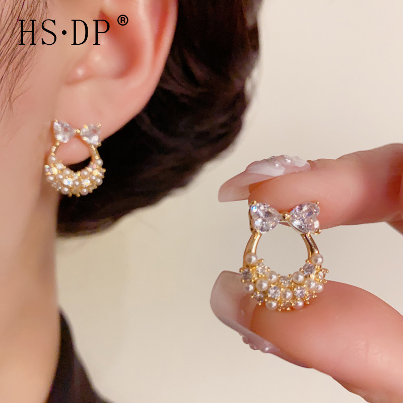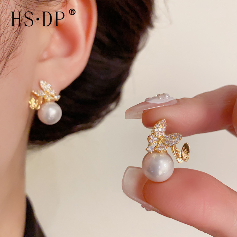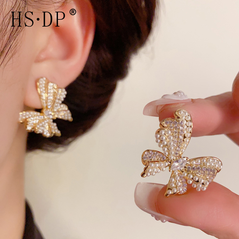 S925銀針気質ファッション小清新ジルコン蝶真珠ピアス女性洗練された小さなイヤリング卸売り