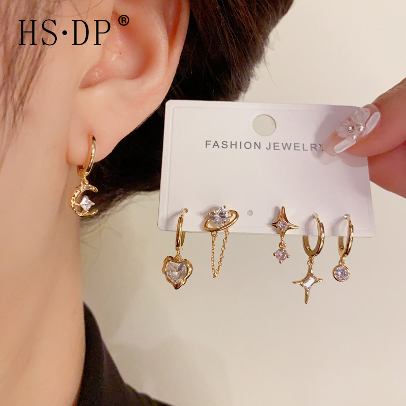 贅沢なファッション独特の愛の芒星の月の組み合わせのスーツの耳のボタンの精巧な百合の高級感のイヤリングの卸売り