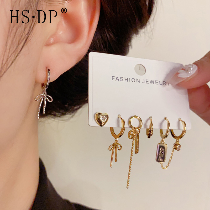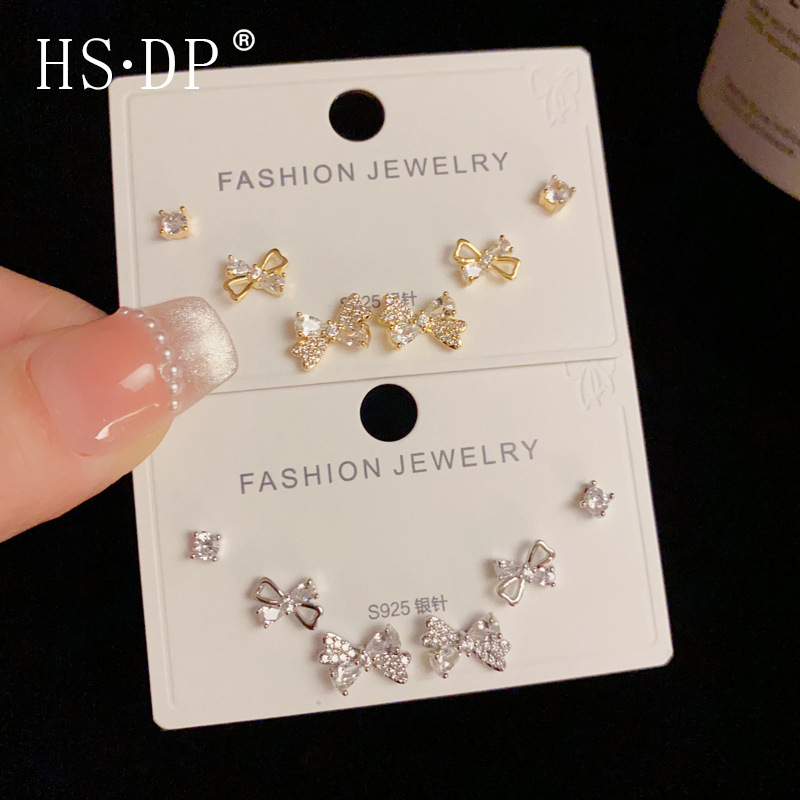秋冬の新型の精巧で洗練されたファッション満ドリルの蝶結びの3つのセットのイヤリングの気質は簡単で小さくて似合うイヤリングの卸売りです。
