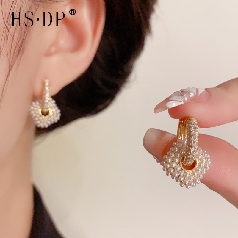 大衆のデザインが洗練された超フラッシュジルコン真珠ピアスファッション百合大気軽贅沢高級感イヤリング卸売り