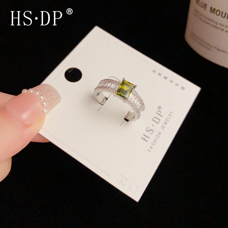 軽くて豪華でシンプルな幾何学のジルコンの緑色の四角形の開口指輪の気質のファッションの高級感の百合の指輪の卸売り
