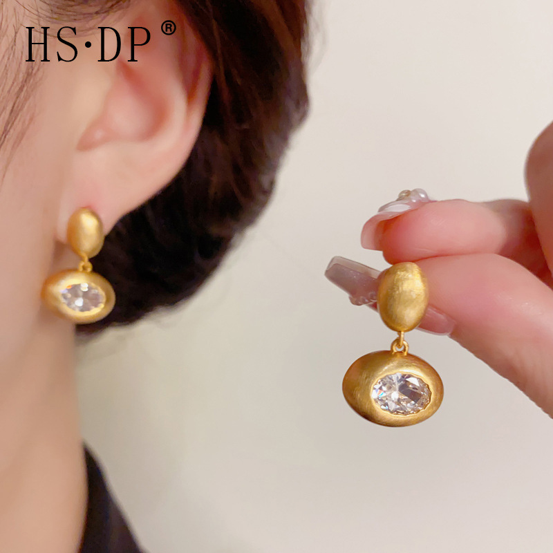 欧米の個性の軽い豪華な金属の糸を引く幾何学の楕円のジルコンのイヤリングの小さい大衆のファッションのデザイン感の冷たい風のイヤリング