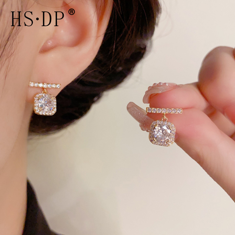 大衆ファッションデザイン感一字ジルコンの方ドリルのピアスの女性の精緻で軽い豪華なセットの超フラッシュ銀針のイヤリングの卸売り