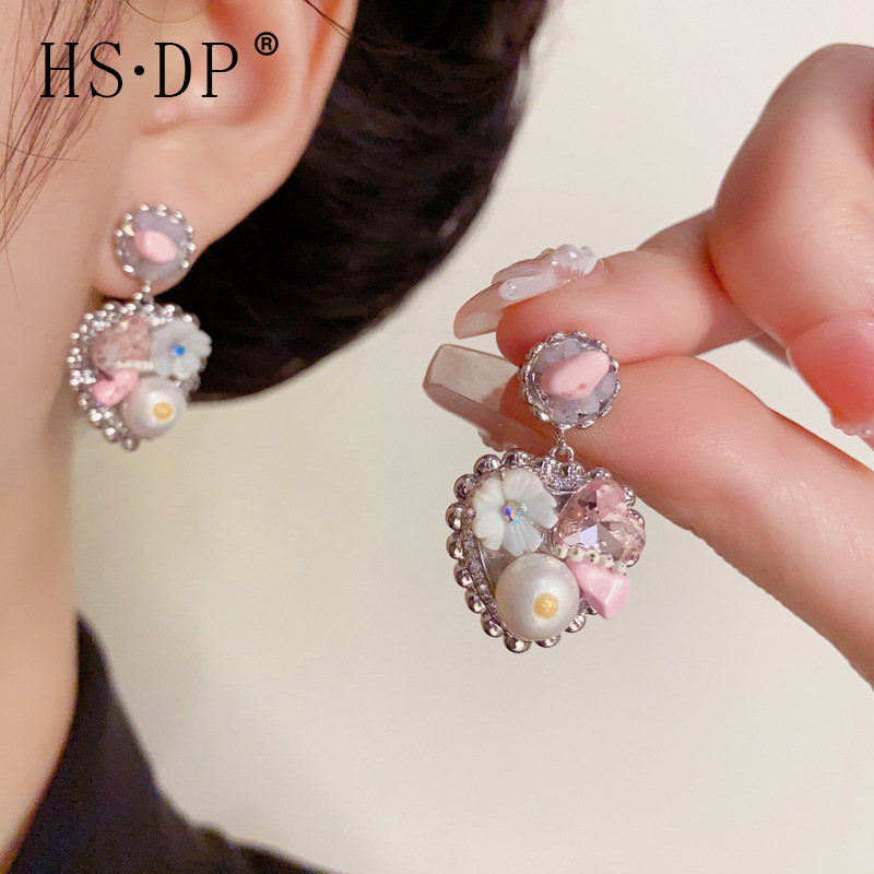 s925 シルバー針レトロ手作りフラワーパールラブイヤリングパーソナライズされた優しく多用途なデザインイヤリング卸売