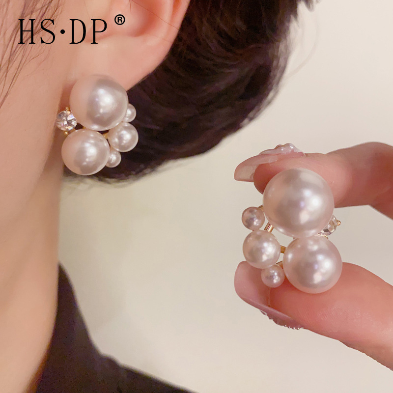 s925 シルバー針ファッショナブルな甘い多用途油絵淡水真珠の花束非対称イヤリング気質シンプルなイヤリング女性のための
