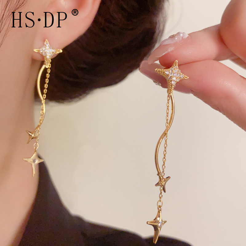 夏の新しいファッションフルダイヤモンドスターロングタッセルイヤリング女性のためのパーソナライズされたライト高級多用途デザインイヤリング卸売