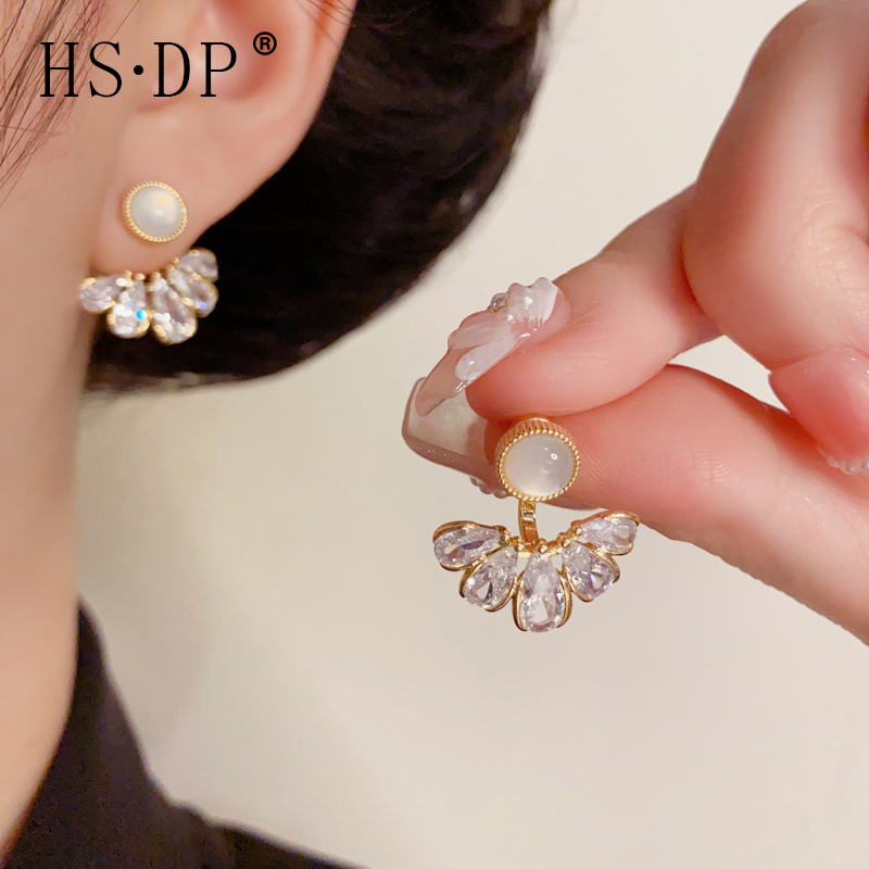 s925 シルバー針気質ファッショナブルなフルダイヤモンドウォータードロップフロントとバックイヤリング女性のための絶妙なファッション多用途スーパーフラッシュイヤリング卸売