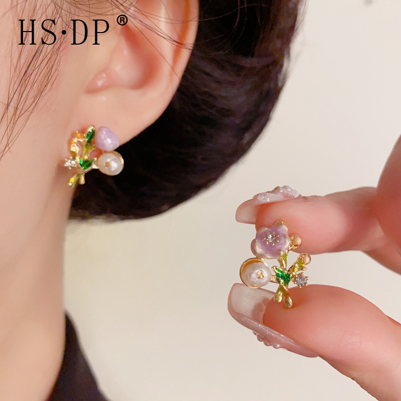 ニッチなライトラグジュアリーファッション、小さな生花のイヤリング、シンプルなデザイン、s925シルバー針ジュエリーのソースメーカー