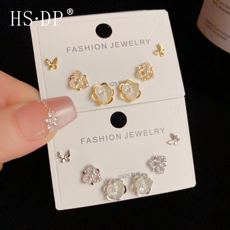 s925 シルバー針気質ファッショナブルな小さな新鮮な蝶の花のスリーピースイヤリングセット毎日甘くて多用途な通勤イヤリング