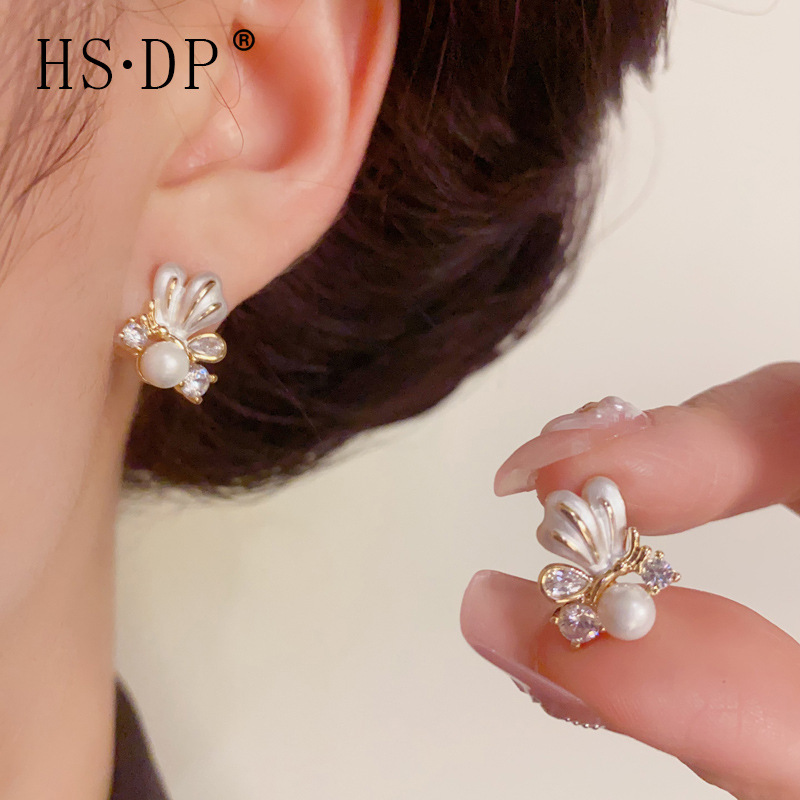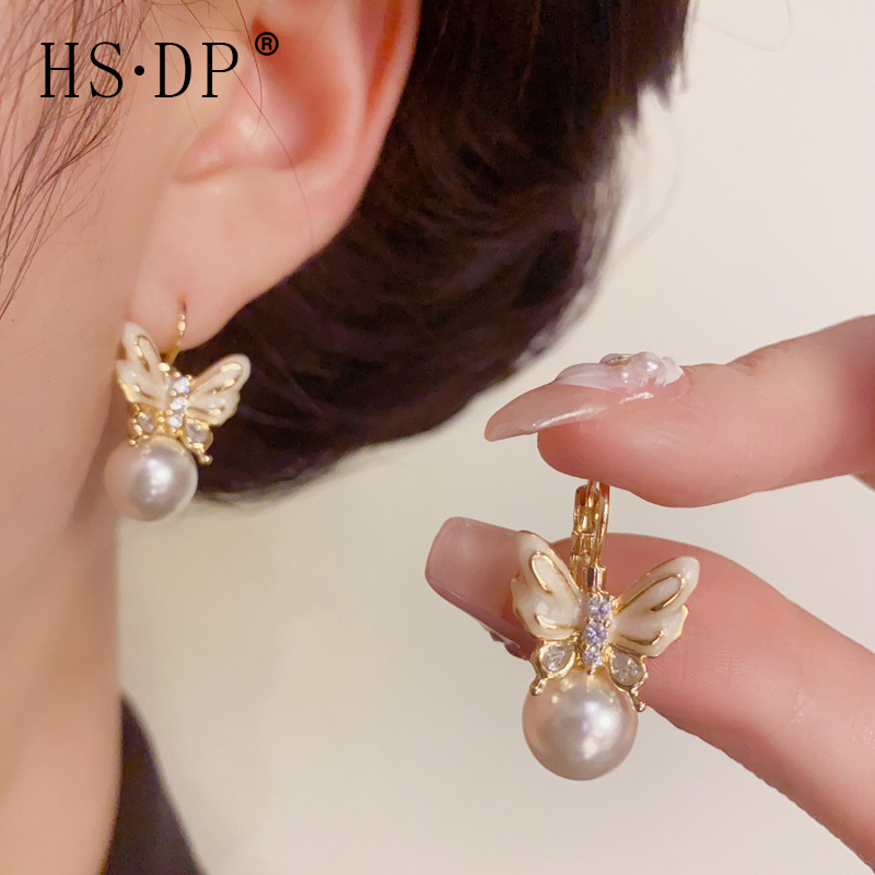 韓国風のファッショナブルで優しく多用途な蝶真珠イヤリングニッチシンプルなデザインの高品質イヤリング卸売