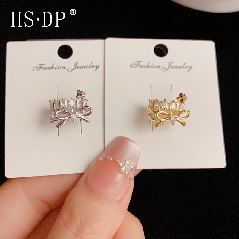 ニッチなデザイン、フルダイヤモンドのリボンイヤーカフ、ピアスなし、ファッショナブルで多用途、スーパーフェアリー、シンプルでクールなスタイルのイヤーカフ