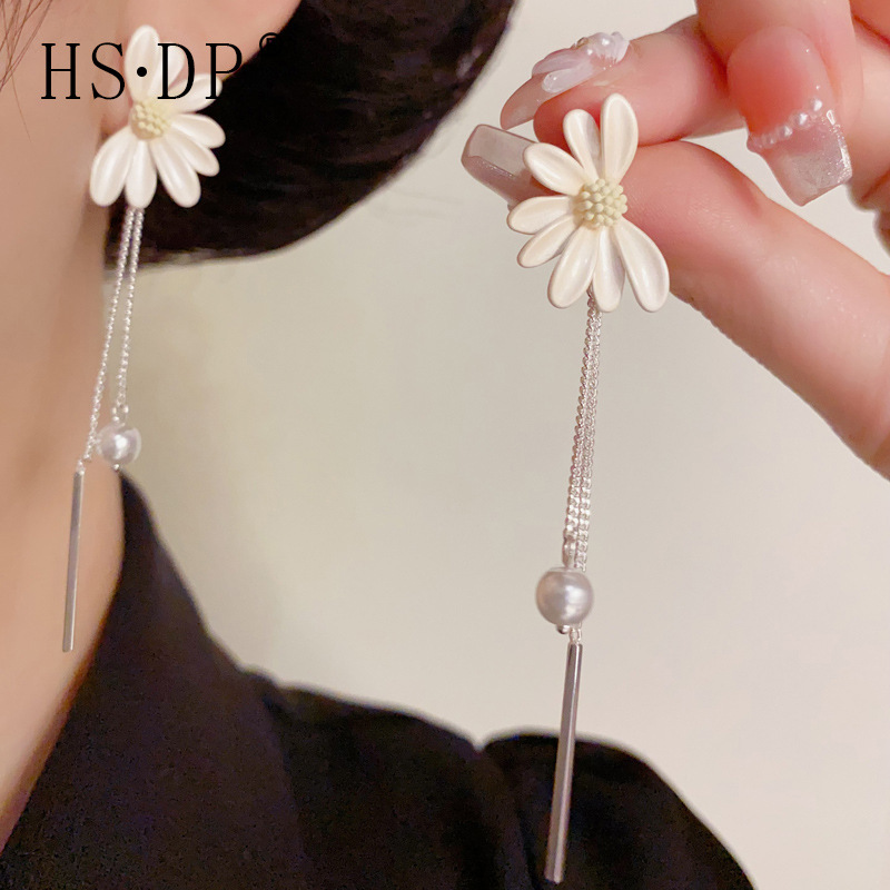 Amazonクロスボーダーファッションフレッシュデイジーフラワーの花びらロングタッセルイヤリング女性用ライトラグジュアリー多用途痩身イヤリング