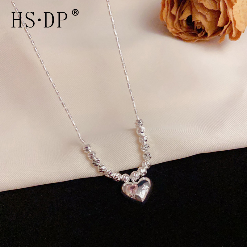 ニッチな気質、ファッショナブルでシンプルな厚いシルバーのラブペンダントネックレス、女性の個性、軽い高級感、コールドスタイルの鎖骨チェーンアクセサリー