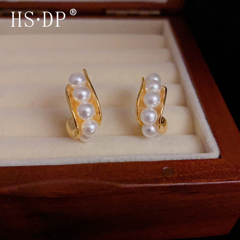 s925 シルバー針気質レトロメタルパール C 字型イヤリングニッチファッションデザイン高品質イヤリング卸売
