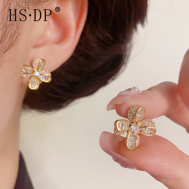 s925 シルバー針絶妙なファッション多用途スーパーフラッシュフルジルコニウムフラワーイヤリング女性のニッチ気質シンプルなデザインイヤリング