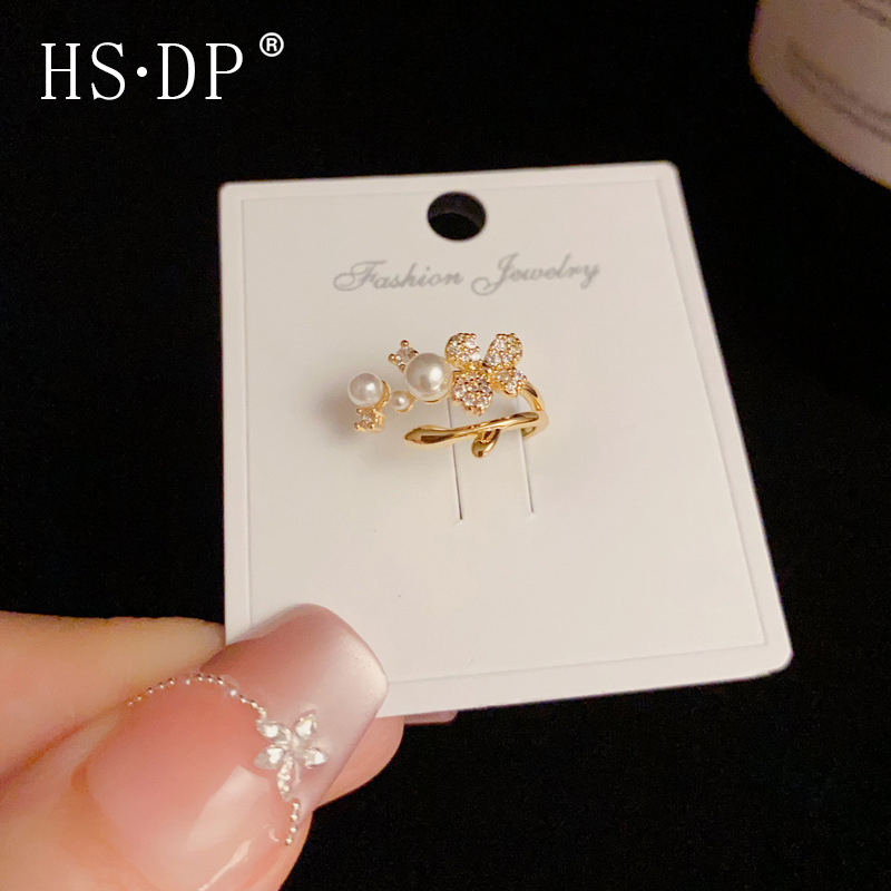 小さな新鮮な気質、ファッショナブルなニッチデザイン、フルダイヤモンドバタフライパールイヤークリップ、絶妙でコンパクトで多用途な女性用イヤークリップ
