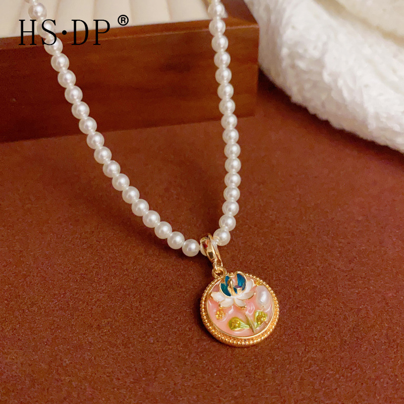春の新型莫奈花園の花のペンダント真珠のネックレスの女性の個性の気質の甘美な百合の鎖の卸売り