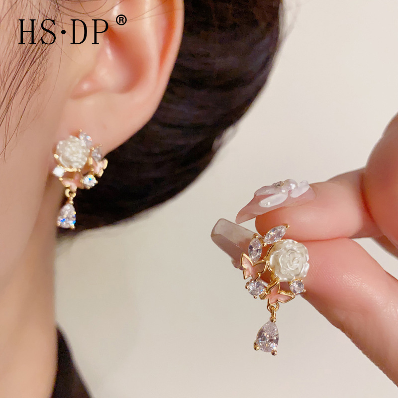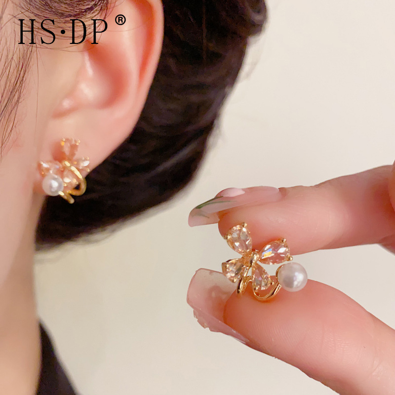 S925銀針軽豪華ファッション高級感マイクロジルコン蝶ネクタイピアス洗練された気質百合超フラッシュイヤリング