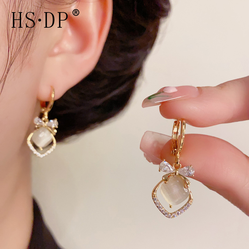 春の新型デザイン感の蝶結びのダイヤモンドの猫の目の石の耳のボタンの女性の個性の軽くて豪華で優しいです。