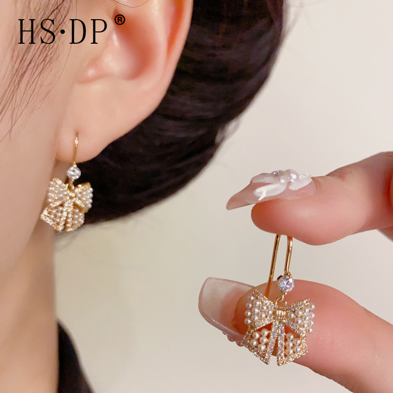 大衆のファッションは優しくて、真珠の蝶結びの耳のフックを入れて、精巧で軽くて高級感があります。