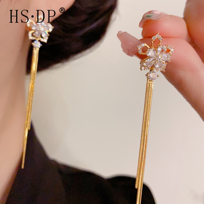 S925銀針ジルコン回転花流蘇イヤリング女性の洗練されたファッションデザイン感の長い耳飾り卸売り