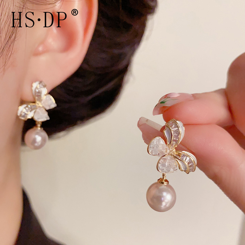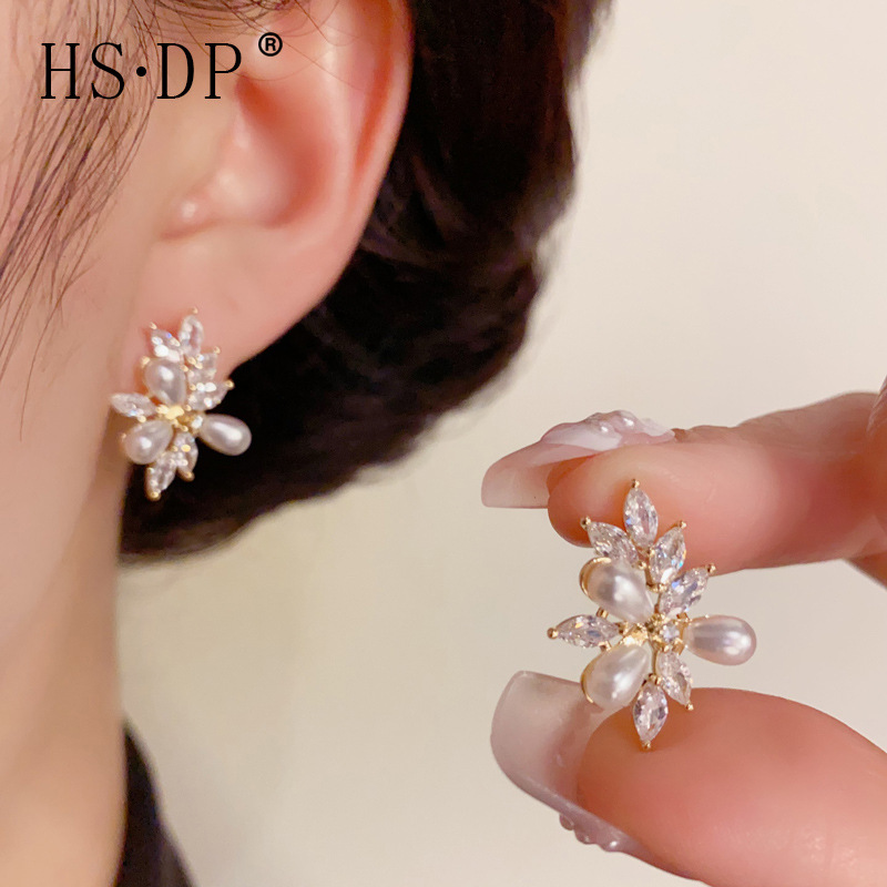 小衆のデザイン感が優しくて、水滴ジルコン真珠ピアスの女性の洗練されたファッションの超フラッシュs925銀針イヤリング