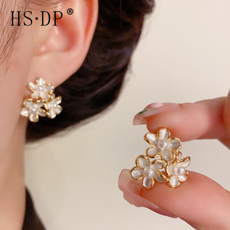 韓国版の気質のファッションは甘くて、白い三弁の花のピアスの小さい大衆の軽い贅沢なデザイン感の小さい清新なイヤリングに似合います。