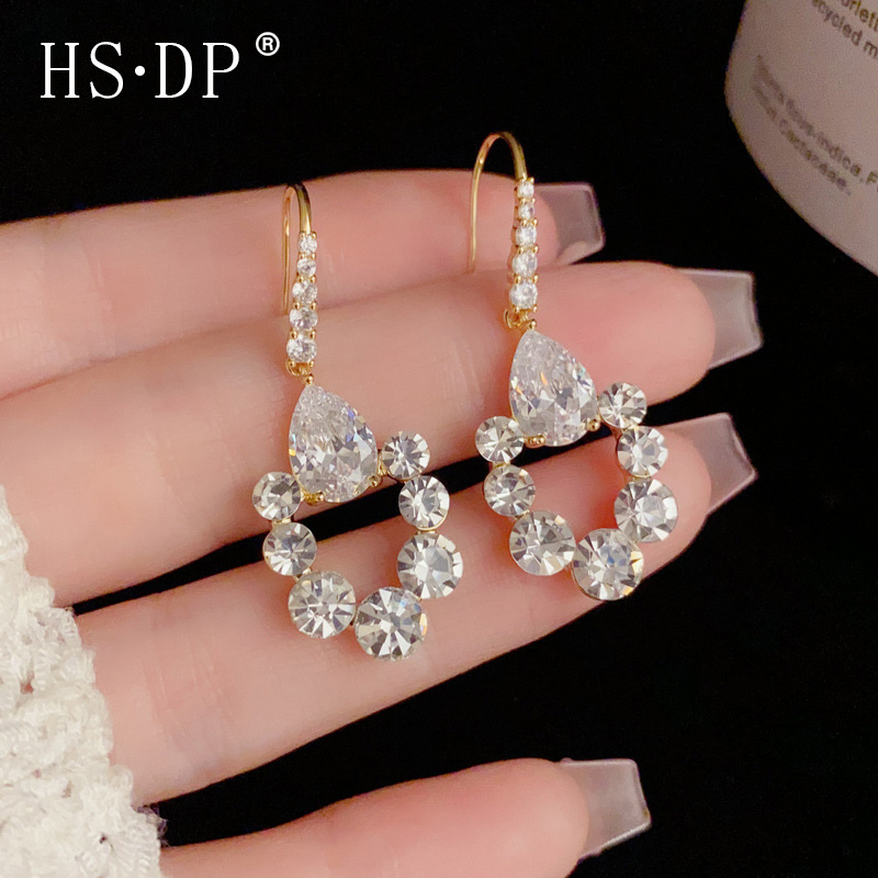 大衆のファッションデザイン感が軽くて豪華で、超フラッシュジルコンの水滴の耳のフックの女性の個性が精巧で高級な耳のペンダントの卸売りです。