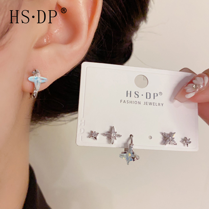 小清新ファッションジルコン芒星三点セットピアス気質個性百合甘デザイン感イヤリング卸売り