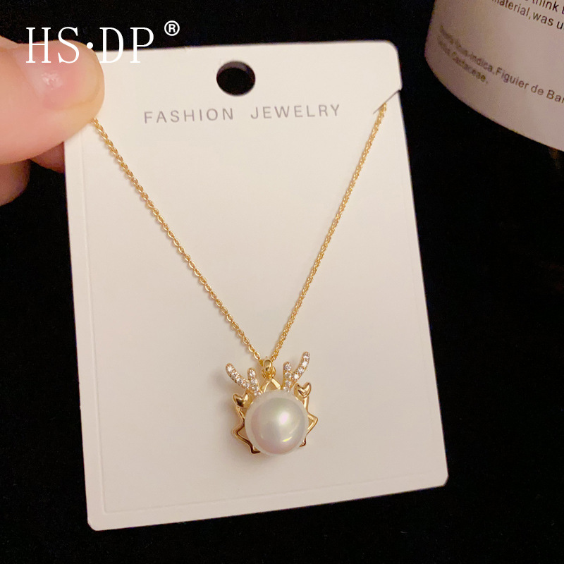 夏のファッションはシンプルで甘い一鹿に真珠のペンダントのネックレスがあります。