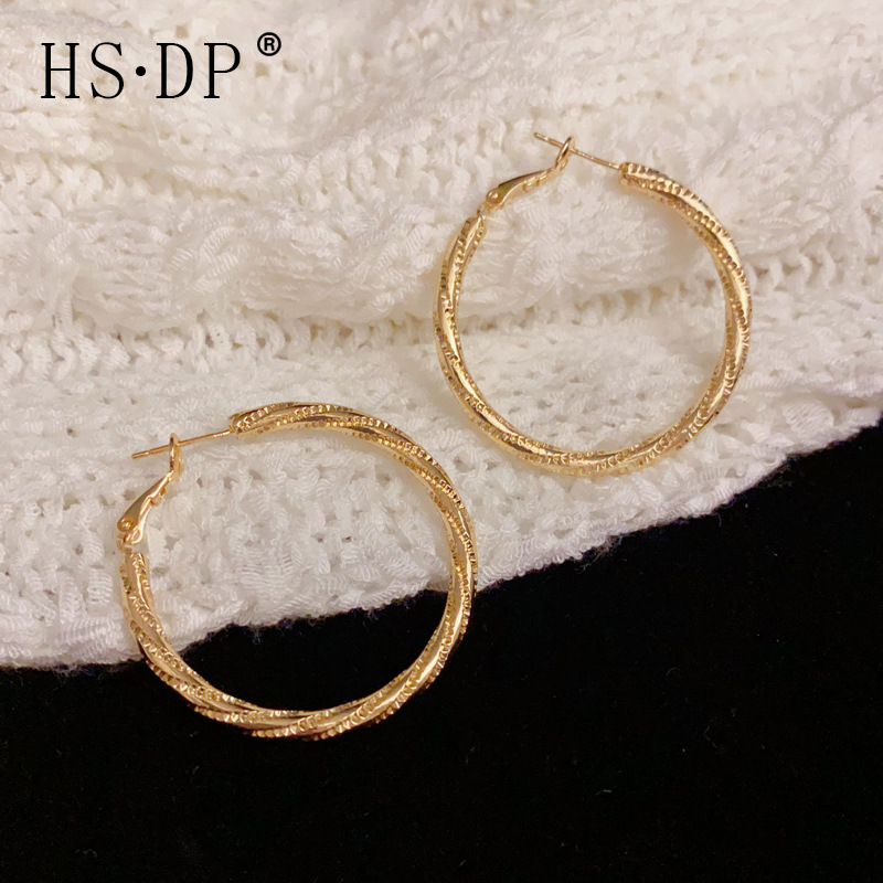 個性ファッション誇張大円イヤリング女性冷たい風気質金属ねじれ耳輪S925銀針耳飾り