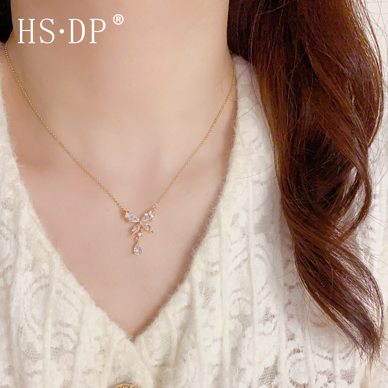 軽豪華高級感ジルコン蝶結び真珠愛流蘇イヤリング
