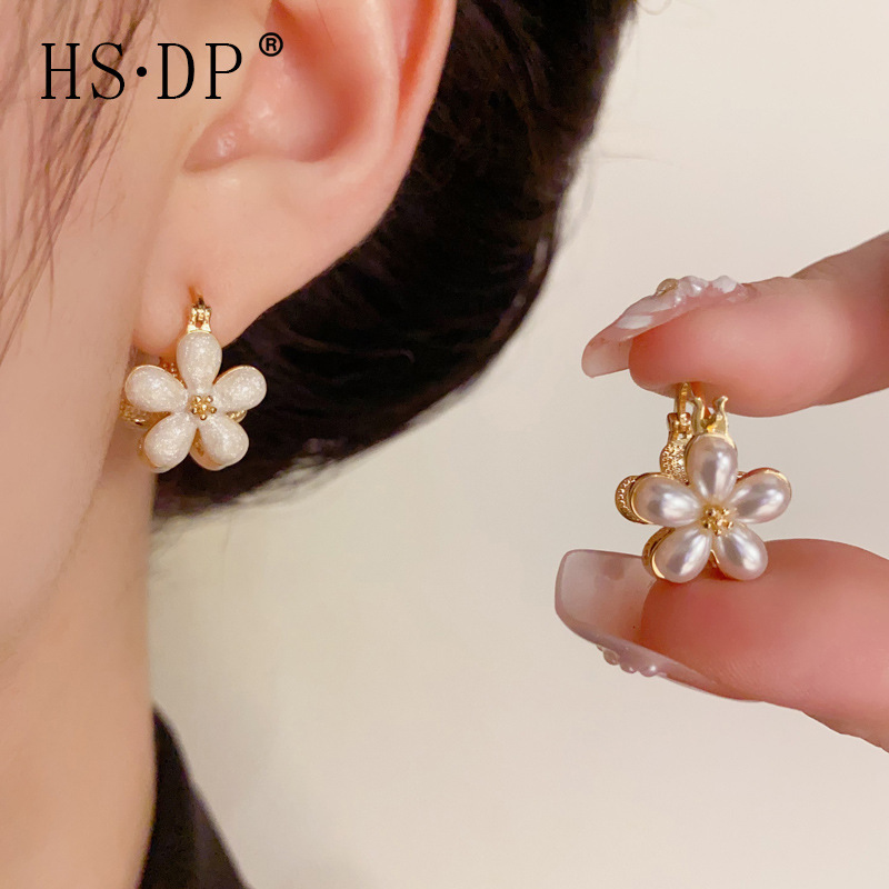 小清新真珠混彩油両面花耳ボタン軽贅沢デザイン高級感シンプルで甘いイヤリング