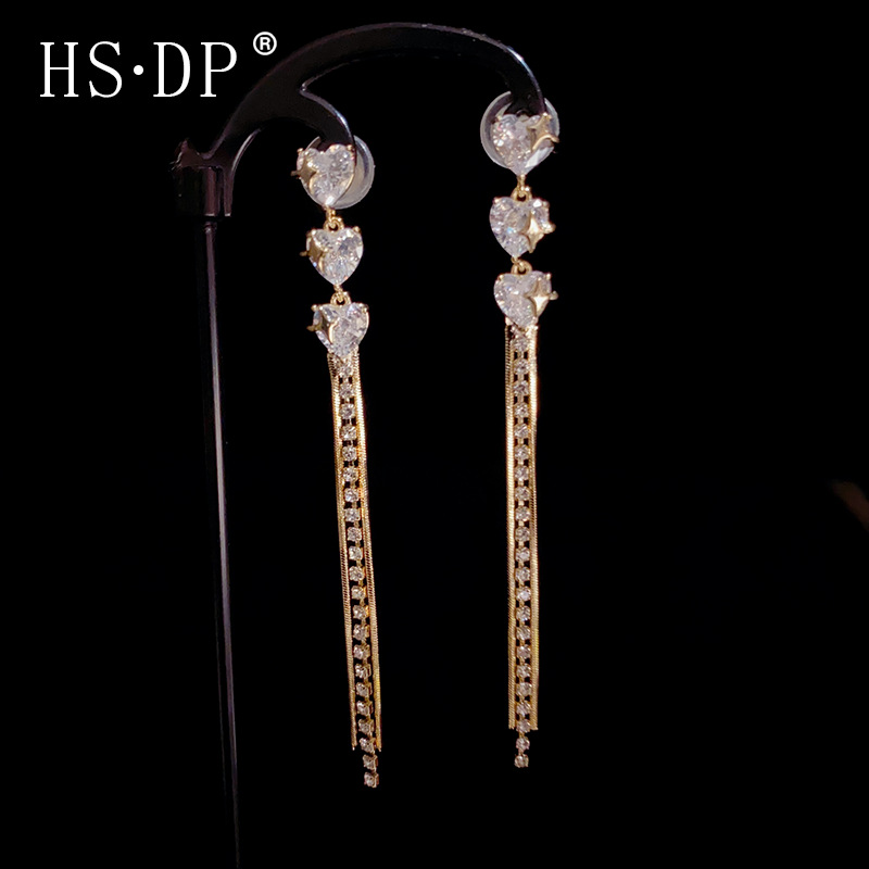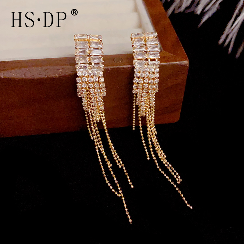 名媛風気質超フラッシュジルコン長型フリンジイヤリングs925銀針高級感軽贅沢ファッション洗練されたイヤリング