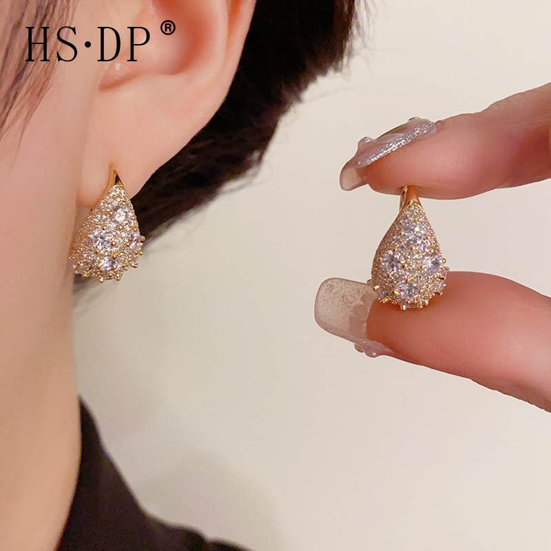 洗練された超キラキラ水滴ジルコンの耳掛け女性ファッション気質の小さな小さなデザイン感イヤリング卸売り