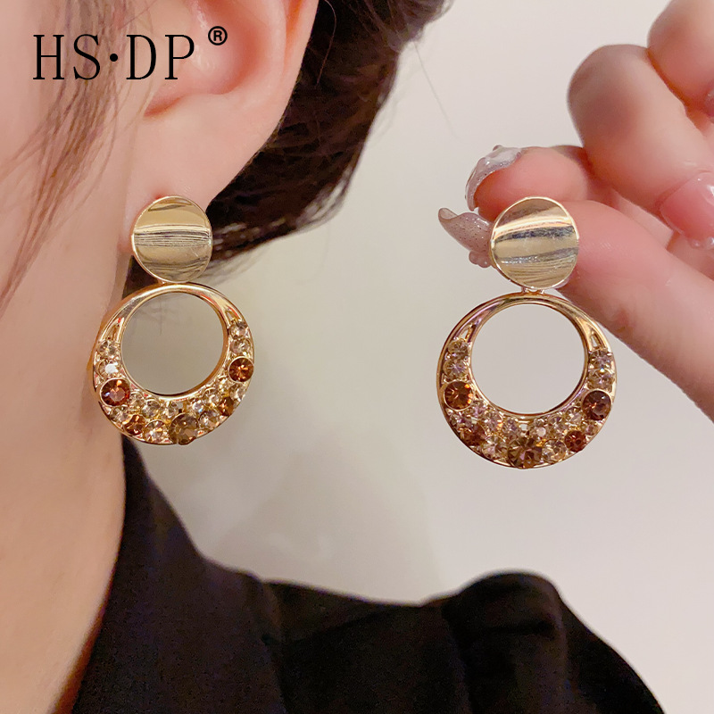 軽豪華名媛風ファッション満ドリル幾何学円形イヤリングs925銀針高級感シンプル秋冬金イヤリング女