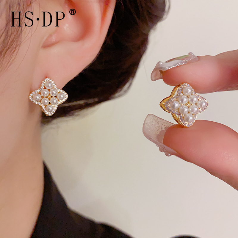 韓国式の名媛風の精巧なファッションは真珠の四つ葉の花の耳のボタンの気質の甘くてかわいいです。