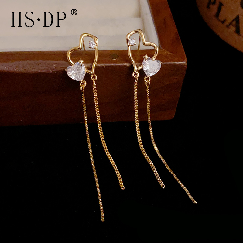 S 925銀針韓国式気質ジルコン愛流蘇耳落軽豪華名媛風精致ファッション百合イヤリング女