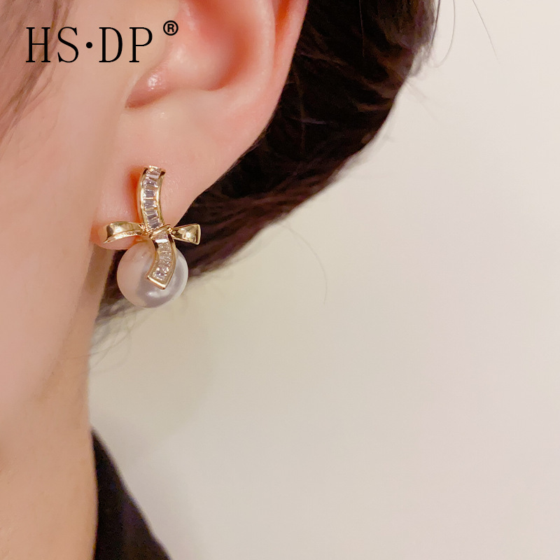 ディザトーン人気モデルファッションエレガントで洗練されたジルコン蝶ネクタイ真珠ピアス高級感シンプルな気質イヤリング
