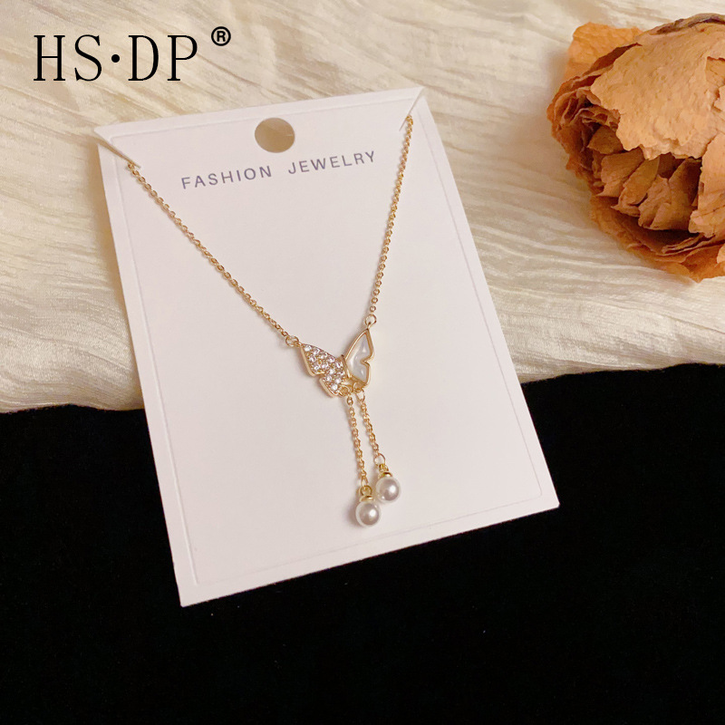 夏の新しいファッションライトラグジュアリー多用途ダイヤモンドバタフライパールタッセルネックレス甘い気質多用途鎖骨チェーン女性用
