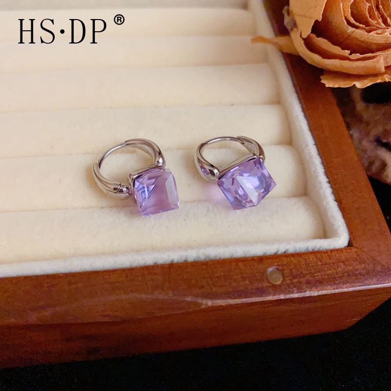 ライトラグジュアリー、フレッシュ、立体的なスクエアクリスタルイヤリング、フェミニン、ファッショナブル、シンプルなデザイン、高品質イヤリング卸売