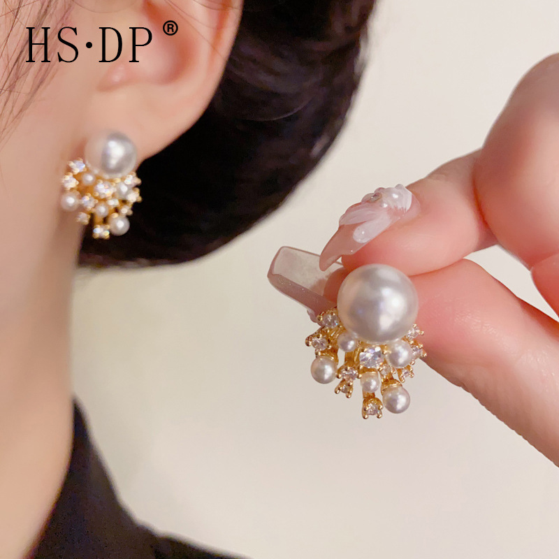 s925 シルバー針ライト高級ファッション多用途スーパーフラッシュダイヤモンドパールイヤリング女性の絶妙なシンプルなハイエンドイヤリング卸売