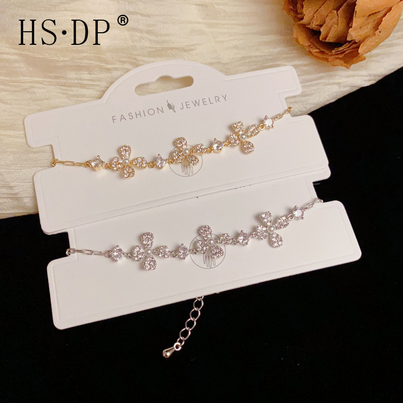 夏の新しいファッションライト高級フルジルコニウムパール花びらブレスレット女性のニッチな気質シンプルで多用途なデザインのブレスレット