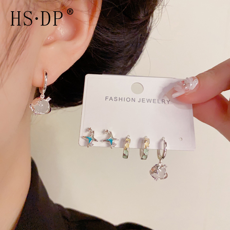 夏の新しいスタイルのパーソナライズされたファッション誇張されたスターとカラフルな惑星のスリーピースイヤリングセットユニークな軽い高級デザインイヤリング