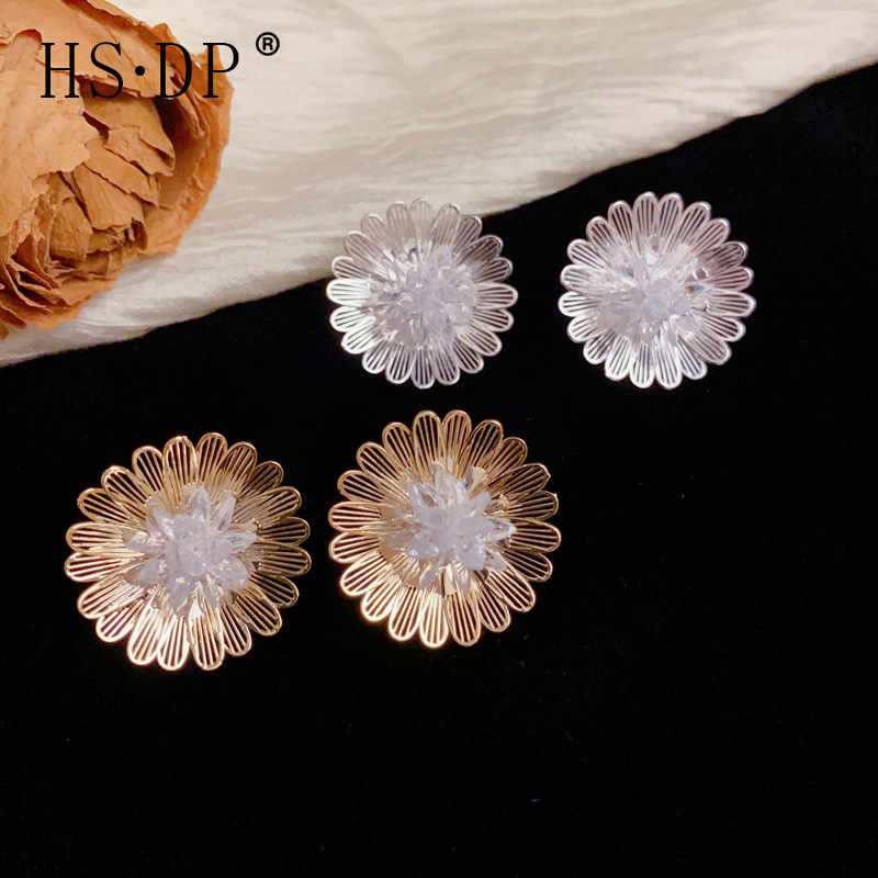 ニッチなファッションデザインのメタルアイスフラワーの花びらイヤリング s925 シルバー針ライト高級多用途高品質イヤリング卸売