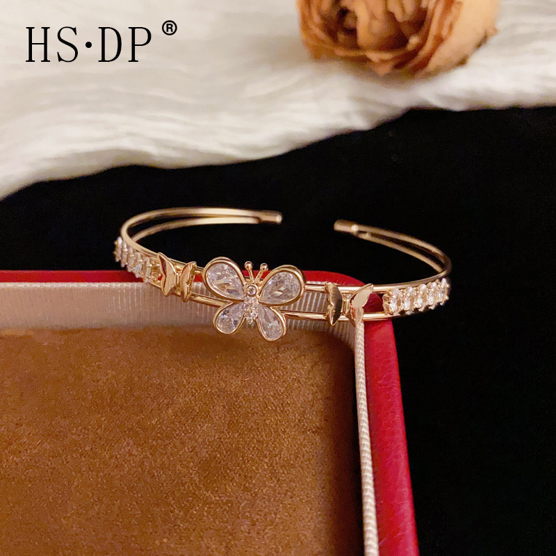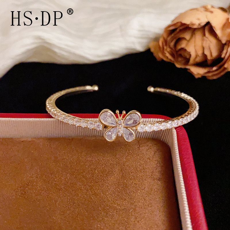 ニッチな気質、ファッショナブルで多用途、女性用の超光沢のあるフルジルコニウムバタフライブレスレット、シンプルなデザイン、オープンブレスレット卸売