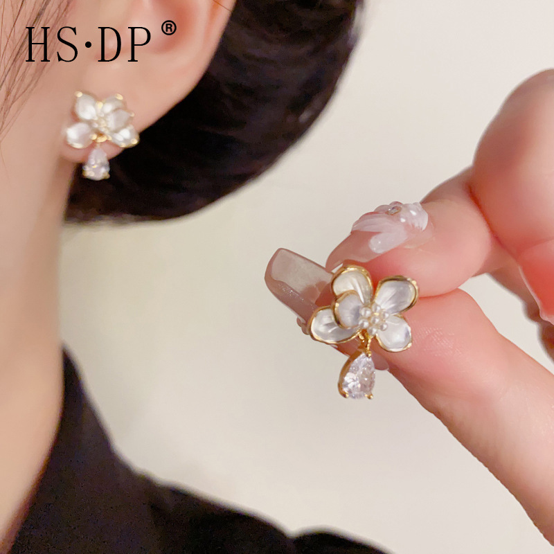 夏の新しいスタイル、新鮮でファッショナブルでシンプルなデザイン、白い花びらの水滴イヤリング、軽い高級感、甘くて多用途なイヤリング