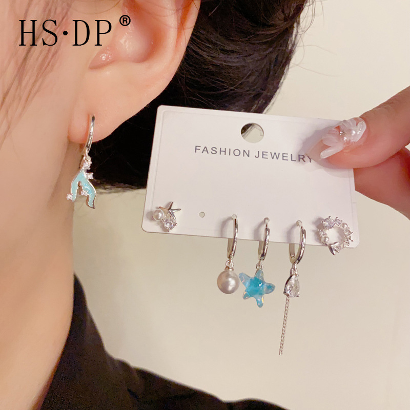 小さな新鮮な青いヒトデのタッセルイヤリングセット、パーソナライズされたライトラグジュアリーファッション、甘くて多用途なデザインのイヤリング卸売