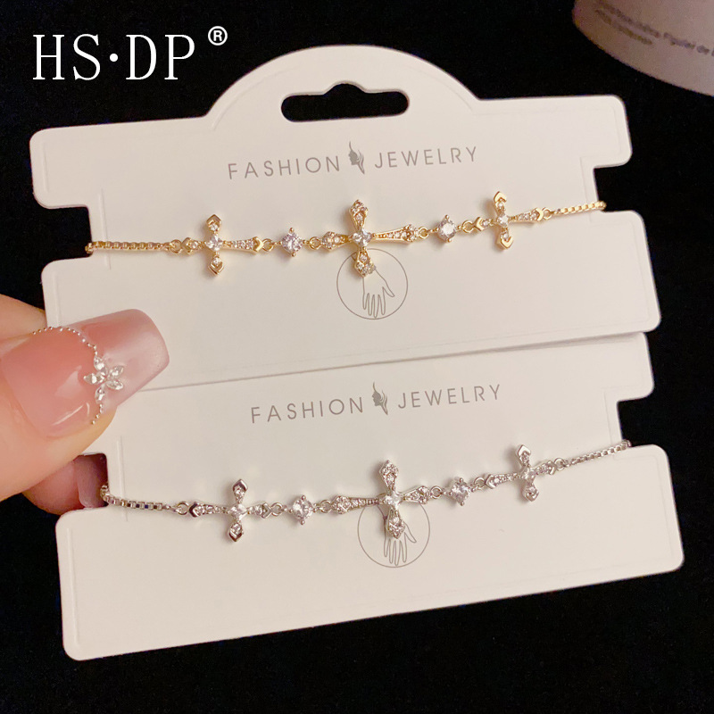 ニッチなファッションデザイン、ダイヤモンドがちりばめられたクロスブレスレット、引き出し式気質、個性、シンプル、軽い高級感、ハイエンドのハンドジュエリー